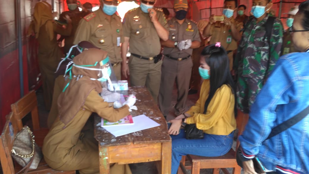 “tindakan dengan menyemprot pengemudi dan penumpang, pemeriksaan, mencatat identitas, asal dan tujuan, direkap keterangan, kemudian diberika edukasi terkait pencegahan virus Corona (covid 19). Selain itu barang bawaan juga di semprot desinfektan,” jelasnya.
