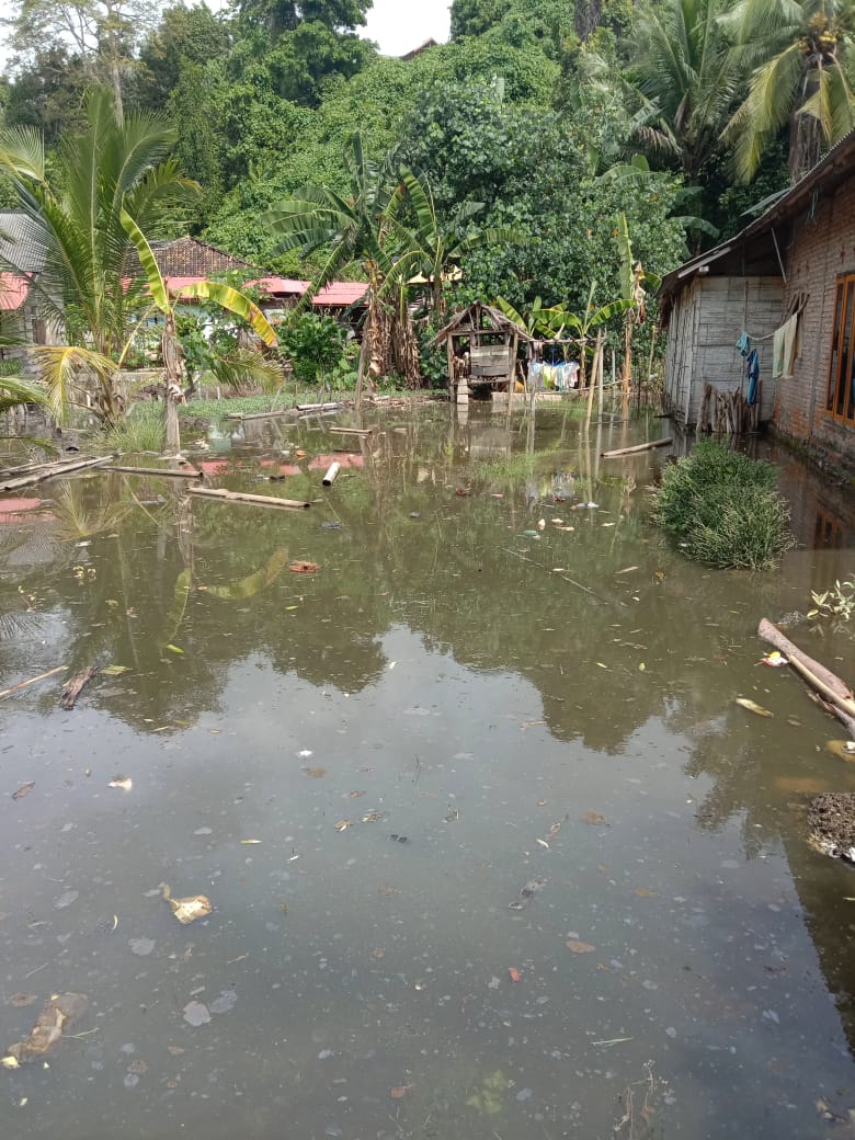“Dede warga setempat, melalui pesan whatsaap mengatakan, hari mingu (24/5) lebaran pertama air laut naik dan mengenangi permukiman dan 25 rumah warga, dengan ketingian sebatas lutut orang dewasa.