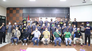 Wakil Bupati Pringsewu didampingi KadisporaPar Pringsewu Jahron, S.Pd. dan pejabat lainnya menyambut baik dengan keberadaan tim La Nyalla Academia Lampung ini yang merupakan putra-putra terbaik hasil seleksi dari berbagai klub yang ada di Provinsi Lampung.