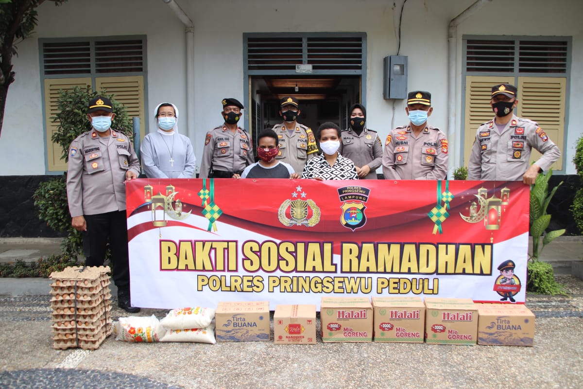Pringsewu,www.delikhukum.net – Kepolisian Resor Pringsewu bersama Bhayangkari cabang Pringsewu menggelar silaturahmi sekaligus Bhakti Sosial Ramadhan dengan memberikan bantuan sembako kepada warga papua yang berada di panti asuhan Santo Vincencius di kelurahan Pringsewu Timur Kecamatan Pringsewu Kabupaten Pringsewu Selasa (20/04/2021).
