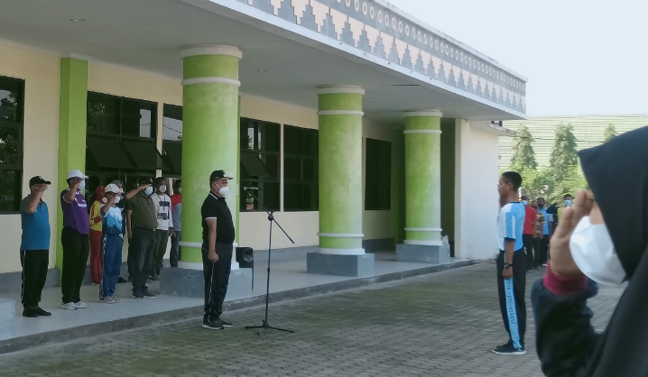 PRINGSEWU – Wakil Bupati Pringsewu Dr.H.Fauzi, SE, M.Kom., Akt., CA, CMA menjadi pembina apel jajaran Dinas Pemuda, Olahraga dan Pariwisata, Dinas Sosial dan Dinas PM-PTSP Kabupaten Pringsewu, beserta 36 anggota Pasukan Pengibar Bendera Pusaka (Paskibraka) dan 19 finalis Muli Mekhanai Kabupaten Pringsewu di halaman Kantor DisporaPar Pringsewu, Jumat (9/4/21).