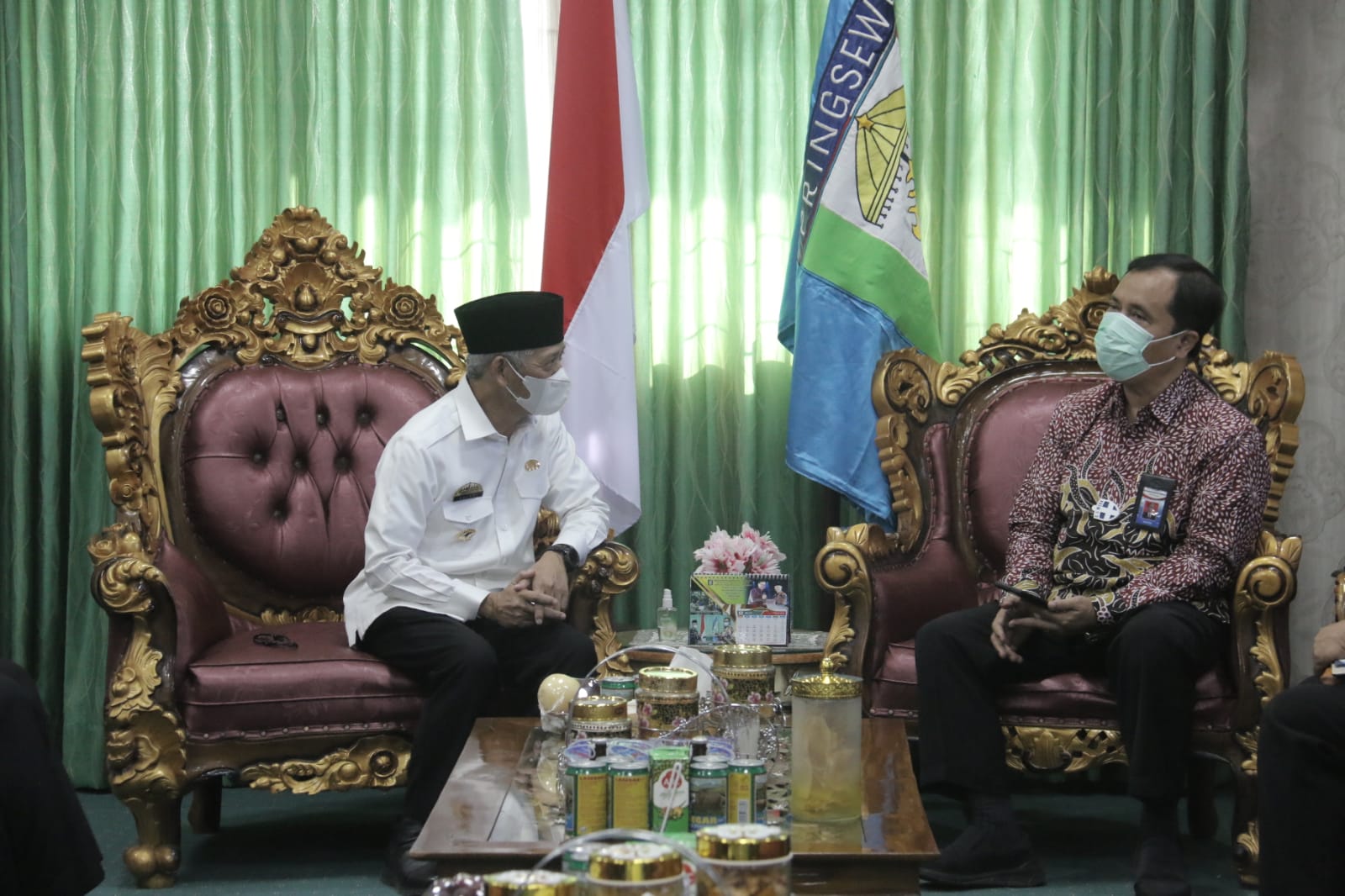 Tim yang dipimpin oleh Kepala Perwakilan BPKP Provinsi Lampung Sumitro ini diterima oleh Bupati Pringsewu Sujadi didampingi Sekretaris Daerah Kabupaten Pringsewu Heri Iswahyudi, Inspektur Andi Purwanto, Kadis Pemberdayaan Masyarakat dan Pekon Eko Sumarmi serta Kepala BPKAD Pringsewu Arief Nugroho di Kantor Bupati Pringsewu, Rabu (19/05/21).