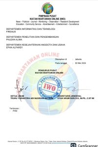 Pringsewu,www.delikhukum.net  – Pengurus Pusat Ikatan Wartawan Online (IWO) telah menetapkan struktur pengurus daerah untuk Kabupaten Pringsewu, Provinsi Lampung, masa bakti 2023-2028. Penetapan ini tertuang dalam Surat Keputusan Nomor 035.B/SKep-PD/PP-WONI2024. Senin 3-6-2024